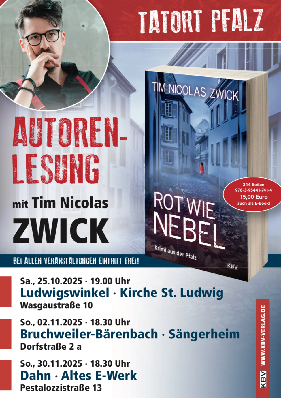 30 – 11 – 2025: Lesung „Rot wie Nebel“, Dahn, Altes E-Werk, Pestalozzistraße 13, 18:30 Uhr